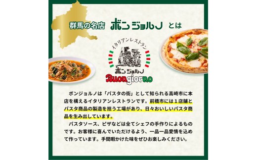 「パスタの街 高崎」で長年愛され続ける老舗イタリアンレストラン ボンジョルノ から、シェフが一つひとつ手づくりした味わいをそのままお届けします。