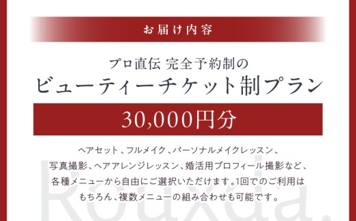 当サロンでご利用いただける30,000円分のビューティーチケット。