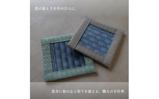 コースターは、い草の爽やかな香りと心地よい手触りが魅力。グラスを置くたびに、畳職人の手仕事が生み出す繊細な温もりを感じられます。