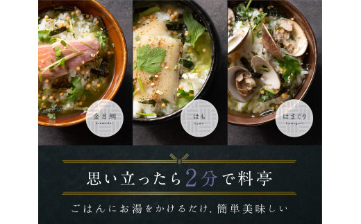 • 宇治和束園 玉露入り 高級海鮮 お茶漬け 3食 セット 『旨味重ね』 京都 京都府 和束 ギフト 贈り物 お茶 玉露 煎茶 かりがね 海鮮 金目鯛 蛤 鱧 お歳暮 山城物産