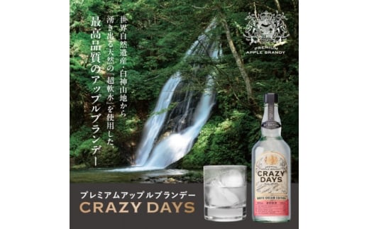 2024年年グッドデザイン賞受賞 青森県の高品質なりんごと白神山地の超軟水を使用し、地域の資源を最大限に引き出したアップルブランデー。 地域と世界をつなぐストーリーがデザインに込められ、青森の自然と文化を伝える工夫が光っている。 パッケージは、高級感と地域の誇りを感じさせる仕上がりで、若い世代にも共感を呼び起こすデザイン。 青森の未来を創る力として、評価されました。 2025年 1月「ジャパン・フード・セレクション」グランプリを受賞 青森産りんご100%のプレミアムアップルブランデー「CRAZY DAYS WHITE DREAM EDITION」が、この度、2万3千人のフードアナリストによる日本初の食品・食材の審査で最高峰の栄誉であるグランプリを受賞。 原材料は青森県産の「りんご」のみ ※20歳未満の飲酒は法律で禁止されています。