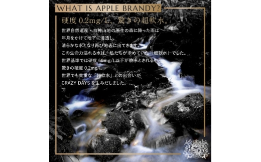青森県の高品質なりんごと白神山地の超軟水を使用し、地域の資源を最大限に引き出したアップルブランデー。