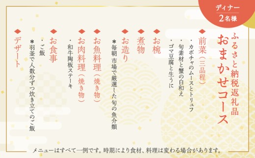- ふるさと納税返礼品おまかせコース(ディナー)<2名様分>