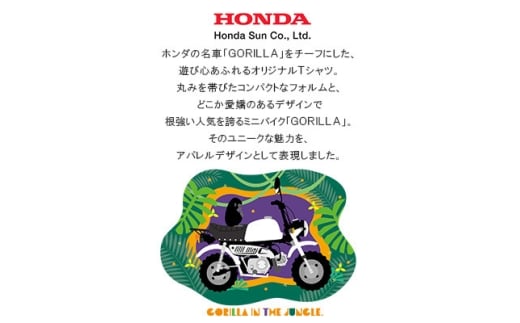 ホンダの名車「GORILLA」をモチーフにした、遊び心あふれるオリジナルTシャツ。