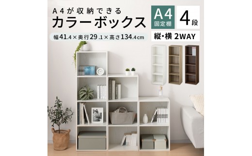ちょっと大きめ、A4サイズのカラーボックス4段タイプ。子供の絵本も仕事の書類も、全部まとめてスッキリ収納。
