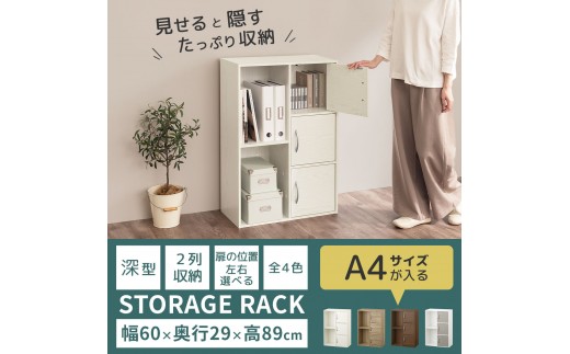 2列に分かれた収納スペースがあるラックです。扉付き収納とオープン収納があり、用途に合わせてお使いいただけます。