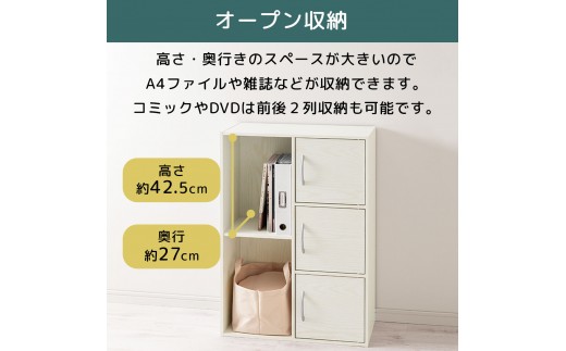 【完成品でお届け】多目的ラック〔扉付き・扉左側タイプ〕(グレー×ホワイト)2列 カラーボックス 2段 3段 扉付き A4 木製 雑誌 収納 収納棚 ラック 扉付きカラーボックス おしゃれ AKANBR920134-L-GY