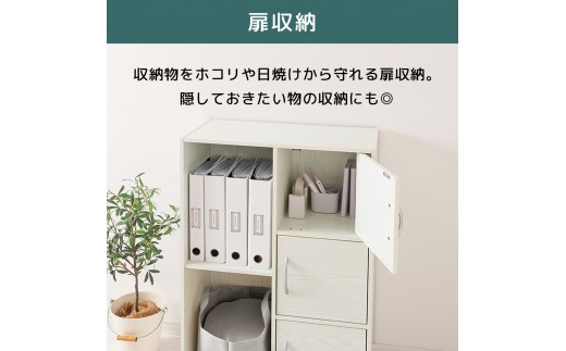 - 【完成品でお届け】多目的ラック〔扉付き・扉左側タイプ〕(グレー×ホワイト)2列 カラーボックス 2段 3段 扉付き A4 木製 雑誌 収納 収納棚 ラック 扉付きカラーボックス おしゃれ AKANBR920134-L-GY
