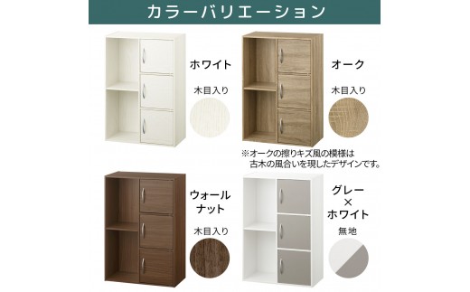 【完成品でお届け】多目的ラック〔扉付き・扉右側タイプ〕(グレー×ホワイト)2列 カラーボックス 2段 3段 扉付き A4 木製 雑誌 コミック 収納 収納棚 ラック 扉付きカラーボックス おしゃれ AKANBR920134-R-GY