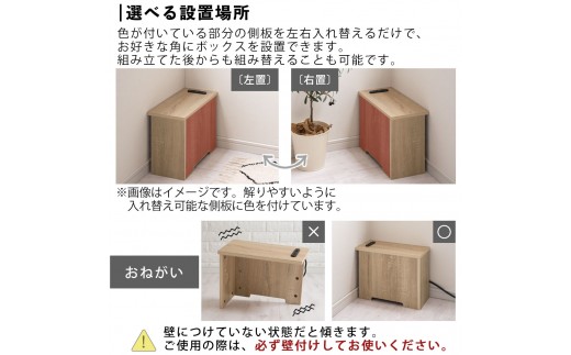 部屋の角にピタリとつける目隠しボックス。コンセントや配線にホコリが被りにくくなっています。