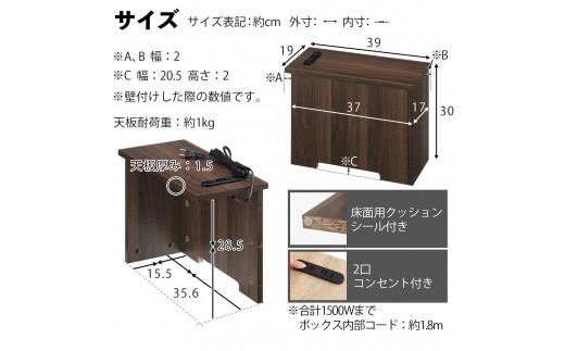 - 【完成品でお届け】ルーターボックス〔小・左置タイプ〕(ウォールナット×ブラック)ケーブルボックス 木製 コンセント 付き 収納 コードボックス コンセントカバー 収納ボックス ケーブルラック EKANTC001539-1L-WAL