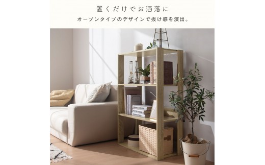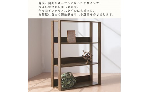 背面と側面がオープンになったデザインのディスプレイラック。色んなインテリアスタイルにも対応し、お部屋に自由で開放感あふれる空間を作りだします。〔60cm〕