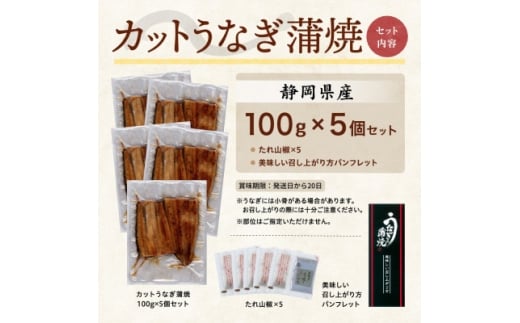 ・【訳あり】静岡県産 うなぎ蒲焼 カット 国産[100g×5パック計500g (タレ・山椒付き)]