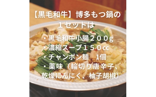 ・【黒毛和牛小腸】博多もつ鍋セット5~6人前[(ホルモン200g・濃縮スープ150cc・チャンポン・唐辛子・乾燥にんにく・柚子胡椒)×各3pc]