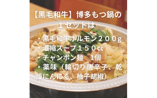 ・【黒毛和牛ミックス】博多もつ鍋セット3~4人前[(ミックスホルモン200g・濃縮スープ150cc・チャンポン・唐辛子・乾燥にんにく・柚子胡椒)×各2]