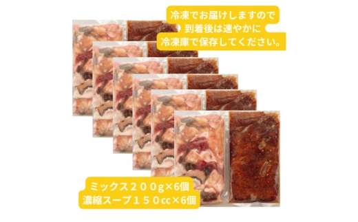 ・【簡易版】黒毛和牛ミックス 博多もつ鍋6セット[(黒毛和牛ミックスホルモン200g+濃縮スープ150ml)×各6セット]