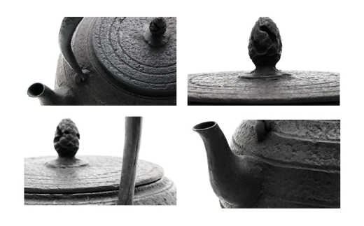 肩から胴のラインを面取にし、玉縁で面の角を柔らかに見せています。また、鉉(取っ手)も最高の袋鉉を外合わせとし、合わせ目を若干開けて趣を出してみました。勿論、一品作の最高級品です。