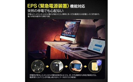 ●安心のEPS機能を搭載しており、停電時に自動でポータブル電源の電力供給に切り替わります。