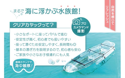 宮古島の海を貸し切って楽しめる1組限定のプライベートツアー「クリアカヤック」体験にご利用いただける体験クーポンです。