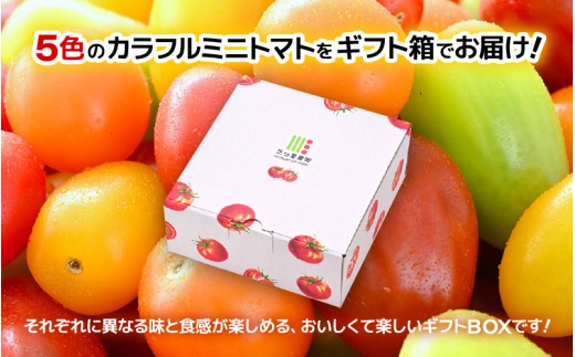 ![カラフルミニトマト5色アソート (赤、オレンジ、イエロー、グリーン、チョコ) 1kgギフト箱入 色とりどりの栄養カプセル!【とまと トマト ミニトマト 野菜 生野菜 美容 健康 新鮮 産地直送 贈答 ギフト 国産】 [A-2611] 2325627 - 福井県坂井市](https://img.furusato-tax.jp/cdn-cgi/image/width=520,height=323/img/x/product/details/20250908/pd_65501b9be06183cabb22637cd4c0738aa52cc21a.jpg)
