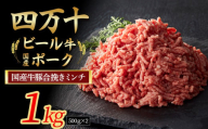 【11月配送】 国産牛肉 豚肉の合挽肉 1kg(500g×2) 配送月指定 Asz-B14 国産 牛肉 豚肉 ミンチ 合挽肉 小分け 冷凍 四万十ポーク ハンバーグ 人気