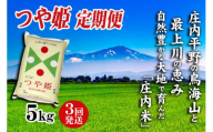 - 【3回定期便】無洗米 特別栽培米つや姫 5kg×3回(計15kg) SA SG0102