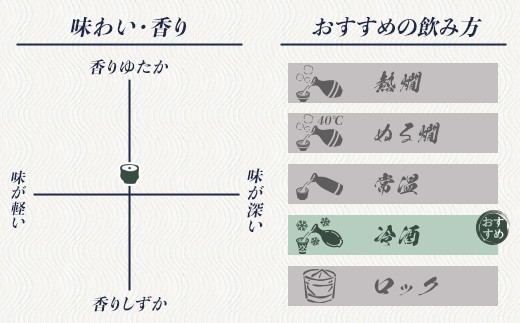 飲み頃温度 5℃~15℃→〇 15℃~25℃→◎ 25℃~35℃→〇 35℃~45℃◎