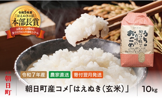 新米 はえぬき 玄米 令和7年産 10kg 2025年産 農家直送 米 こめ コメ 山形県 朝日町産