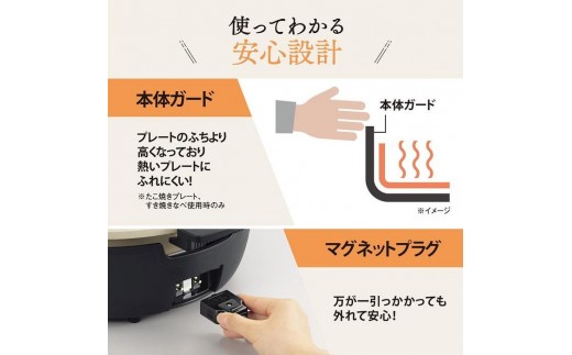 ◎熱くなったプレートに直接手が触れにくい「本体ガード」(すき焼きなべ・たこ焼きプレート使用時のみ)