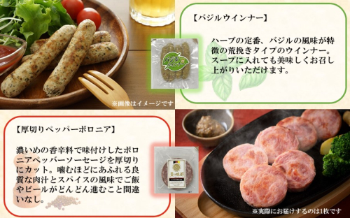 ハーブの定番、バジルの風味が特徴の荒挽きタイプのウインナー。スープに入れても美味しくお召し上がりいただけます。