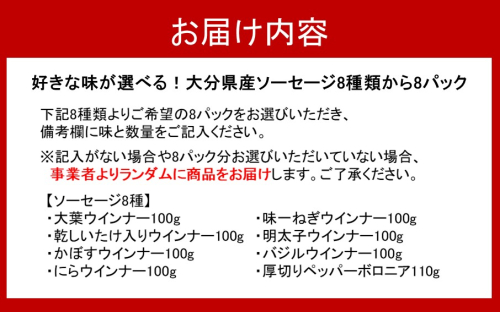 好きな味が選べる!大分県産ソーセージ8種類から8パック_2238R
