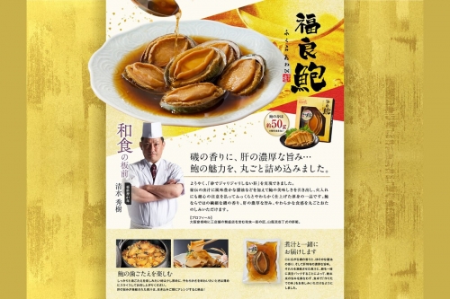 福良鮑1個、海鮮箱入りおこわ3個、湯浅醤油豚角煮200g