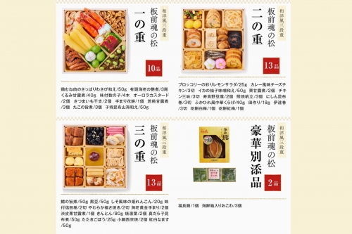 板前魂の人気No.1三段重に、今年は豪華別添品が3種も加わりました!