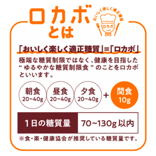 1小袋(平均重量13g)あたりのロカボ糖質は3.0gです。