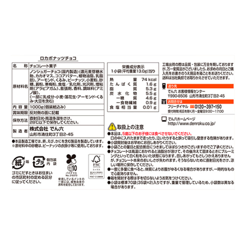 - 【定期便2回】【でん六】ロカボナッツチョコ 1kg×2ヶ月 小袋タイプ FZ25-950