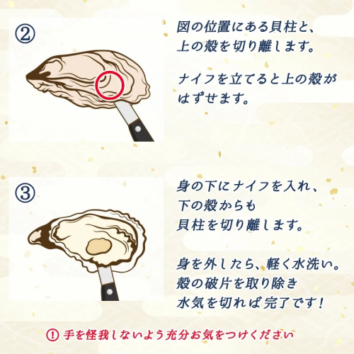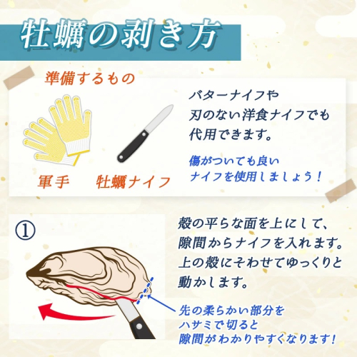 ・牡蠣の生育状況や天候により、大きさや見た目に個体差が生じる場合がございます。