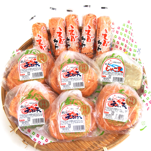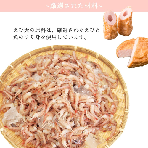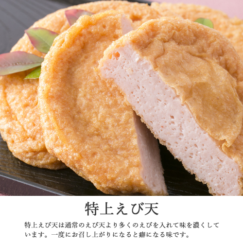特上えび天を中心にえび竹輪・じゃこ天が一緒に入った冷凍保存も可能なセットです。