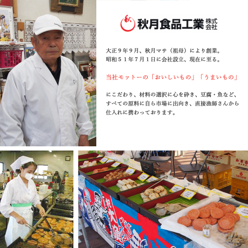 瀬戸内の魚介などを使用し、練り、成形、揚げ、袋詰めまで加工の全工程と梱包発送すべて区域内で行っております。
