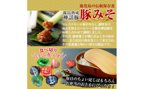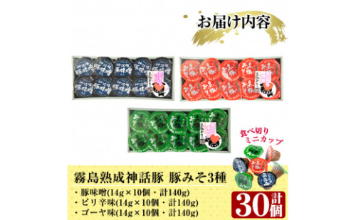 Z6-012-S 霧島神話豚の豚みそ!合計30個(豚味噌10個・ピリ辛味10個・ゴーヤ味10個)【富士食品】霧島市 豚肉 豚味噌 ミソ 味噌 ご飯のお供 調味料 おかず 小分け 和風 惣菜 お弁当