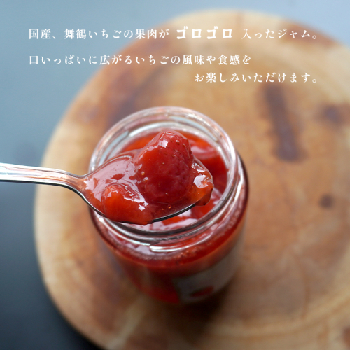 いちごジャム:いちご(京都府舞鶴産)、砂糖、レモン果汁、ゲル化剤(リンゴ由来のペクチン)
