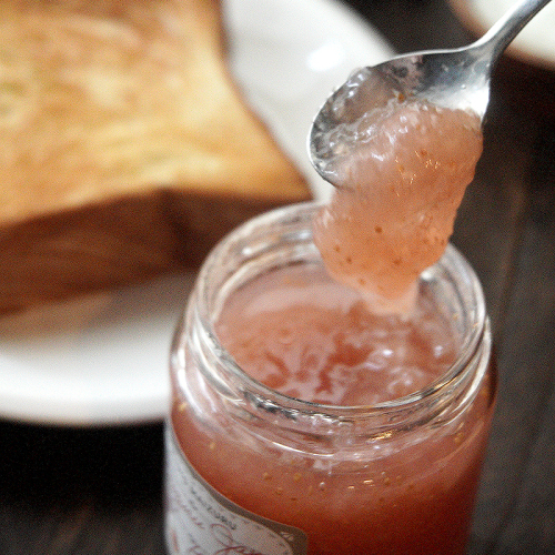 いちじくジャム:いちじく(京都府舞鶴産)、砂糖、レモン果汁、ゲル化剤(リンゴ由来のペクチン)