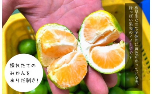早期に収穫できる品種のみかんで、果肉の食べごろが早いため果皮が緑色や少し黄色味がかっているのが特徴です。10月~11月中旬が旬で後半に向かうに連れて緑から黄色味を帯びたオレンジ色へと変わっていきます。