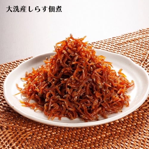 〇しらす佃煮:当店の大洗産しらす干しを独自のたれで炊き上げて甘く仕上げた佃煮です。