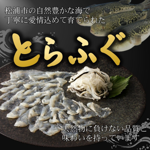 松浦市の自然豊かな海で育てられたとらふぐは、透き通った身の歯ごたえと上品な甘さなど天然物に負けない味わいを持ち、「鷹ふく」として九州各地から関西・関東まで広い範囲に出荷されています。