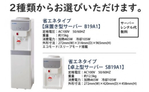 - 8L×3本 (毎月8リットルのボトルを3本) ウォーターサーバー無料レンタル付
