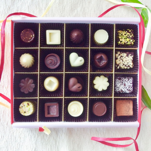 カカオ60%のオーガニッククーベルチョコとオーガニックホワイトクーベルチョコだけを使って作ったミニチョコ、オーガニックココアとオーガニック粗糖、イタリア産エキストラバージンオリーブオイルをベースに作った乳製品不使用生チョコの詰め合わせセットです。ミニチョコの中には、綾町産フルーツジャムや手作りナッツペーストなどを詰めました。