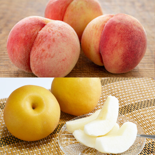 【9月~10月】:詰合せ やや硬め白桃 約1kg2~5玉(白桃、さくら、西王母等 )と和梨約1kg(幸水)秀品 (9/10~10/10) 冷蔵