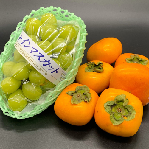 【10月~11月】:詰合せ シャインマスカット (1房 500g)と柿 (1kg M~3Lサイズ)秀品 (10/15~11/15) 冷蔵