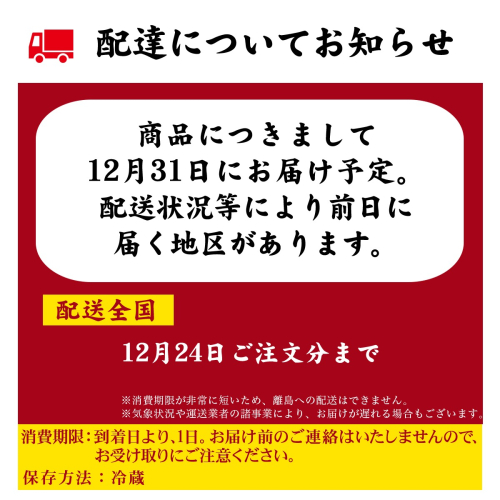 ※お申し込みは、12月24日にお支払いまで完了したものに限らせていただきます。