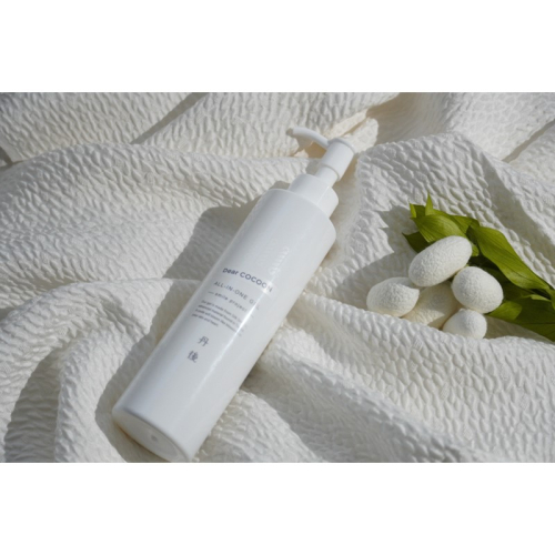 お肌との親和性が高く、織り上がった「丹後ちりめん」から水のみで抽出した安心・安全な「絹セリシン」をたっぷりと配合。白生地産地の丹後でしか抽出できない特別な「絹セリシン」。シルクの天然保湿成分がお肌をやさしく包み込みます。
